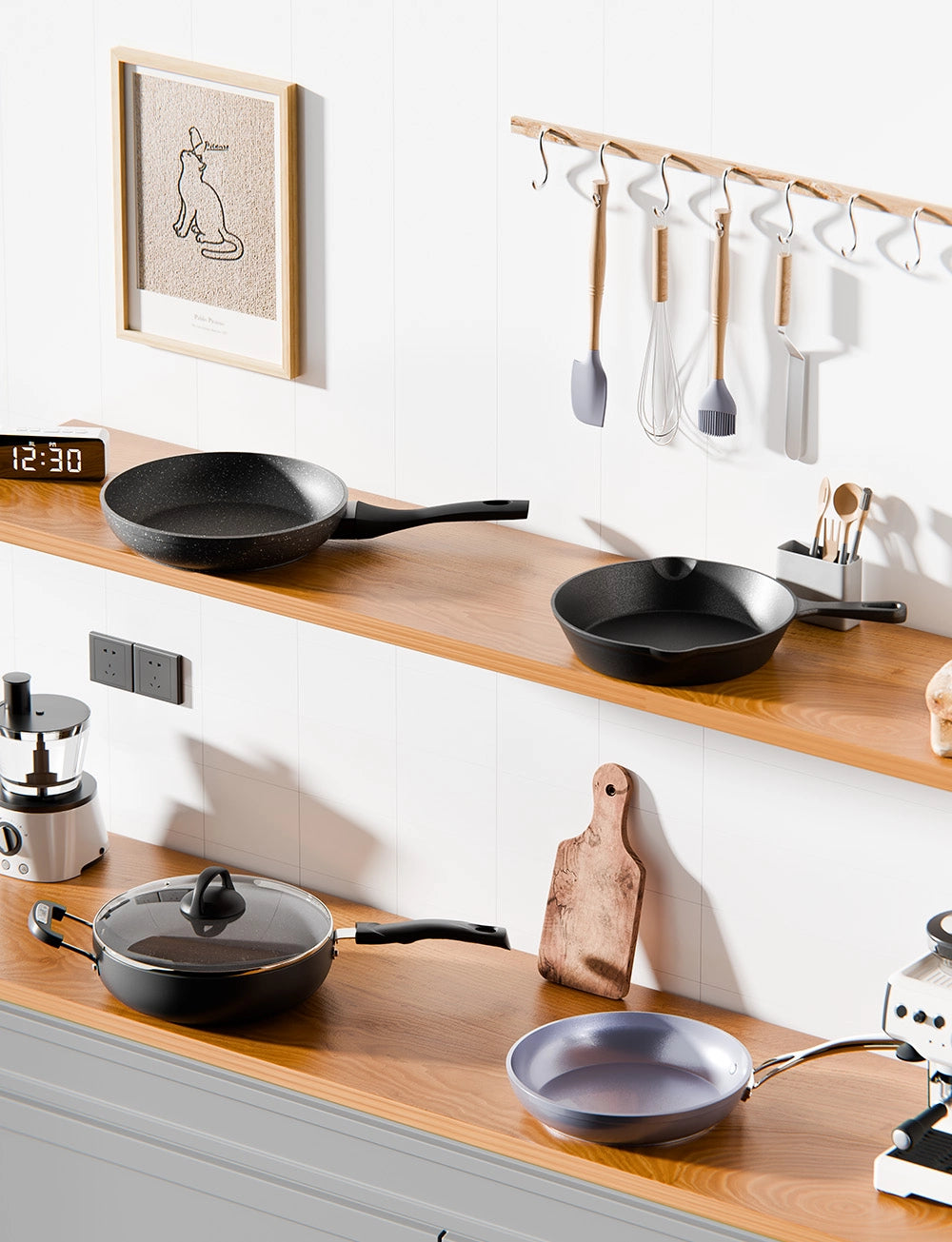 "Gorgeous! These pans have completely changed my life! I look forward to cooking every day. They are actually nonstick, nontoxic, AND they're just beautiful out in your kitchen."