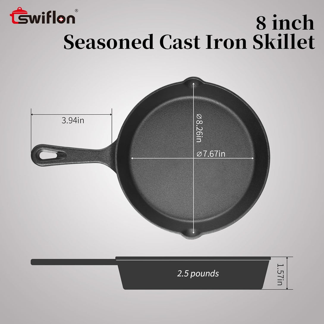 Superior Pre-Seasoned Craftsmanship:Built tough to outlast trends, Swiflon cast iron skillets are your kitchen's MVP. Pre-seasoned for a slick, non-stick surface, they're safer than Teflon and just get better with age. Hand wash, dry on medium heat, and season with natural oils for top performance