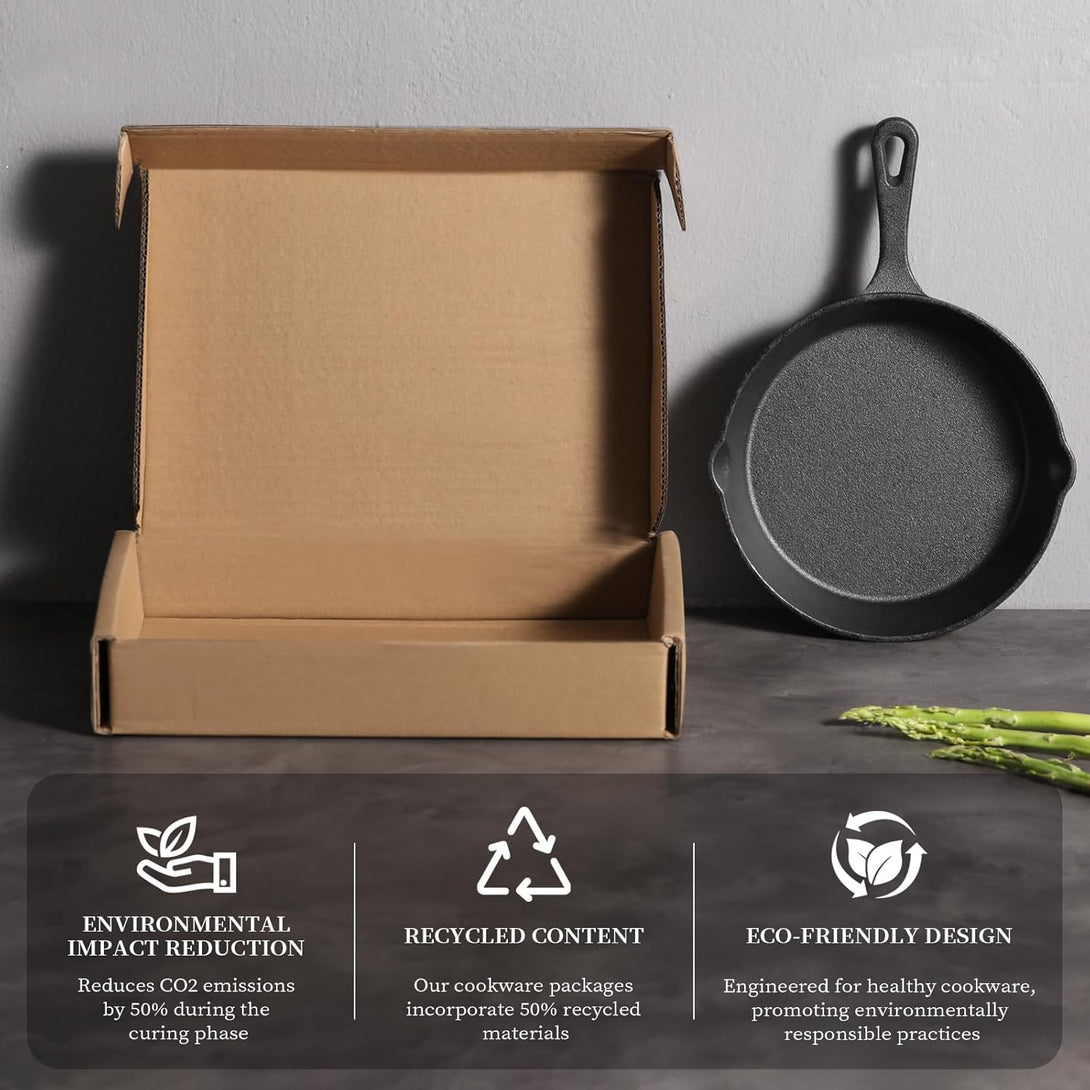Perfect Sizes for Any Dish:Swiflon cast iron skillets come in two versatile sizes: 8 inches and 10 inches. The 8-inch skillet is perfect for small meals and sides, while the 10-inch skillet is ideal for larger dishes and family feasts. No matter the meal, we’ve got you covered