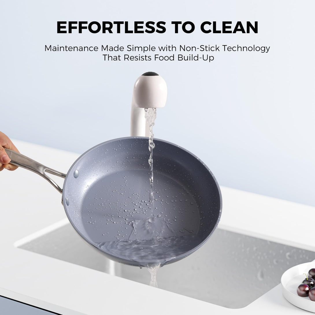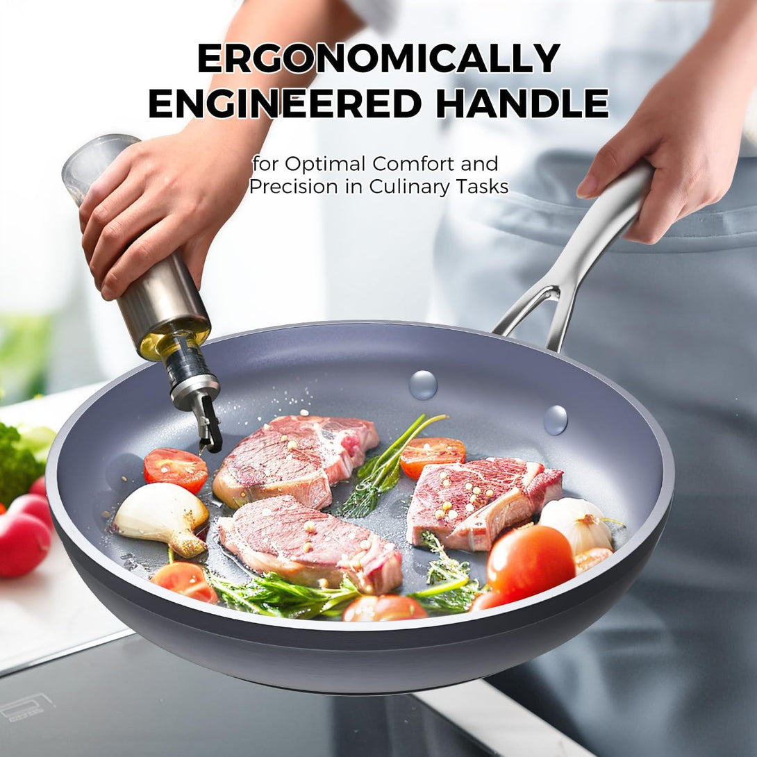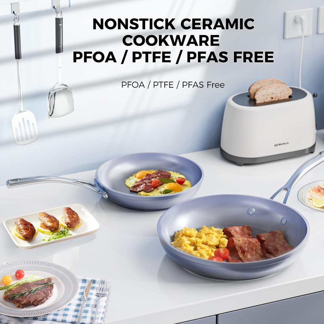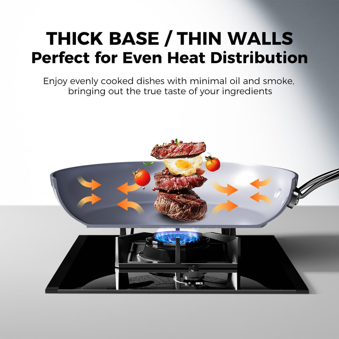 Advanced KFCC Ceramic Coating: Utilizes cutting-edge KFCC ceramic technology for superior nonstick performance without PFAS chemicals, promoting healthier and ecofriendly cooking